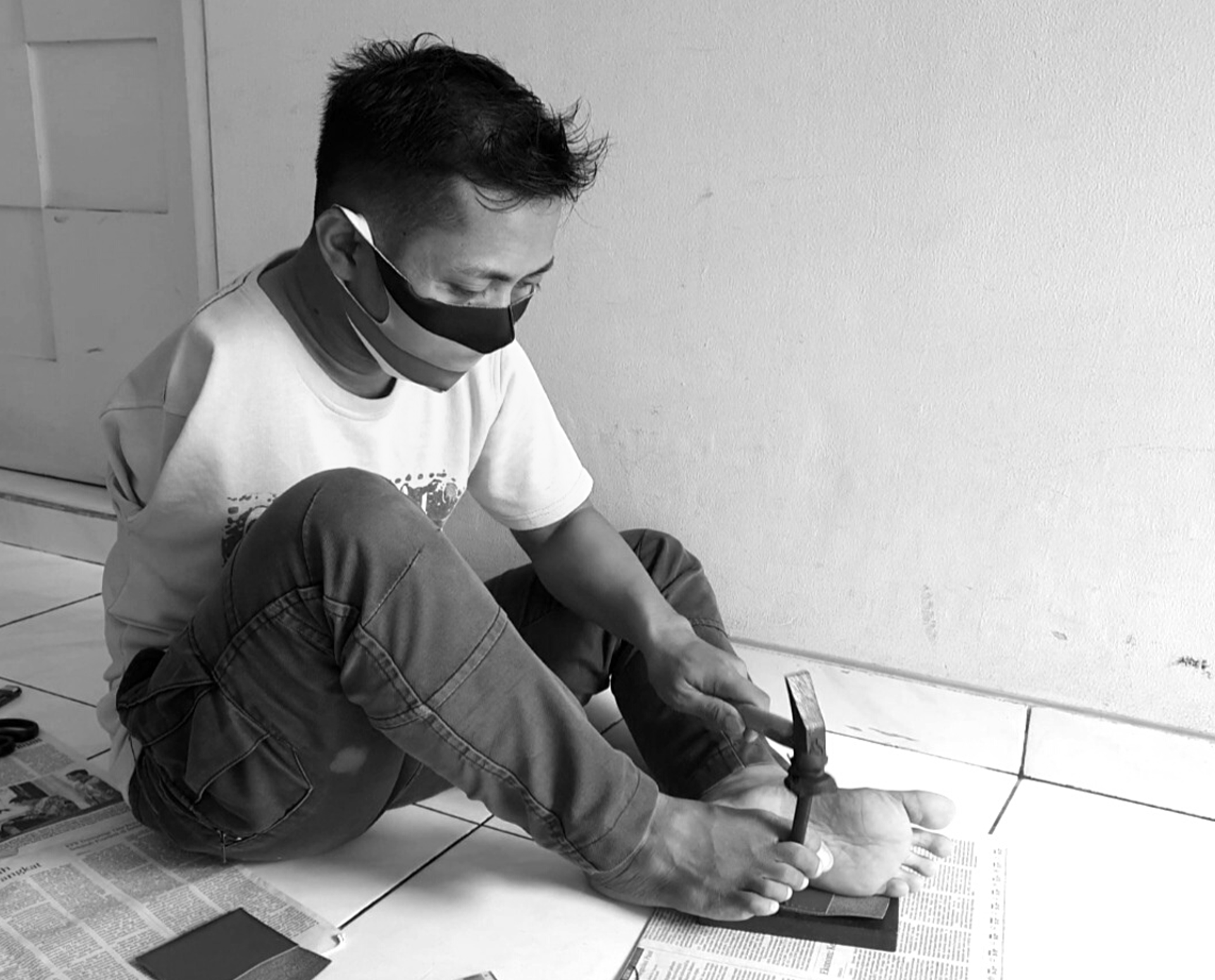 Perajin disabilitas turun ke jalan, membeli makanan dari pengusaha warung kecil dan membagikannya kepada masyarakat miskin saat masa pandemi Covid-19.