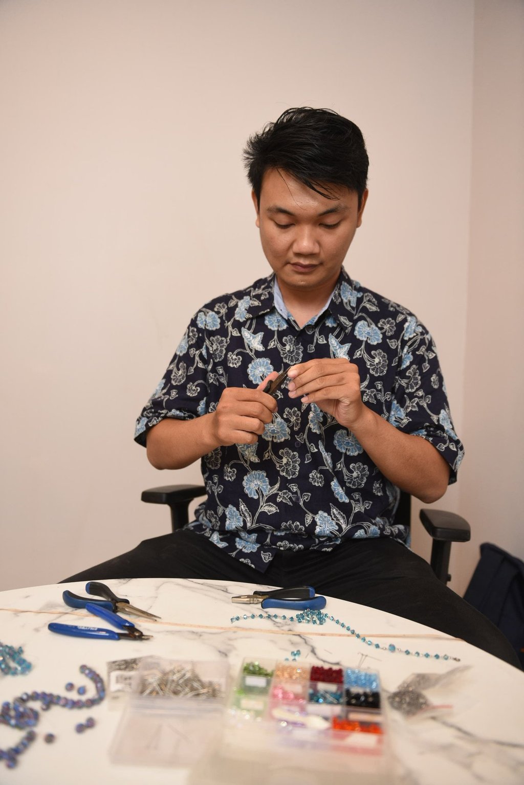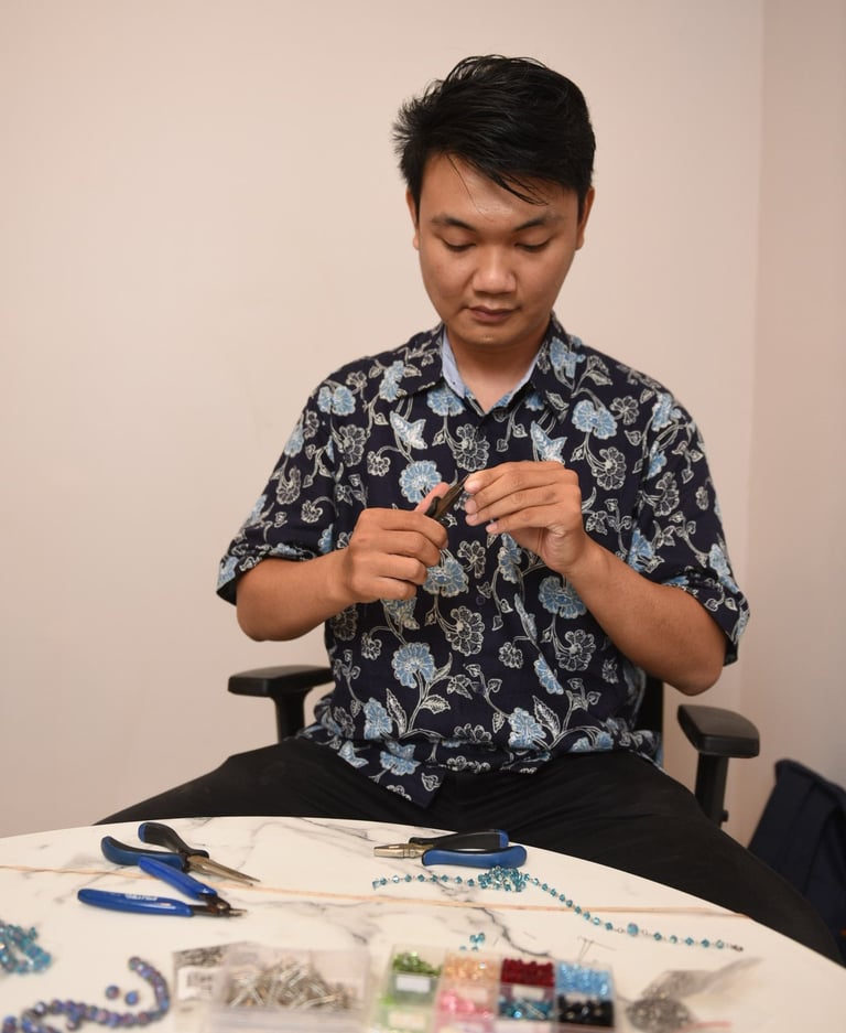 Sama seperti yang lain, Chris memiliki potensi yang baik dan Anita melihatnya. Walaupun saat awal bertemu, Chris sama sekali tidak memiliki keahlian dalam hal kerajinan tangan. “Ibu Anita memberi arahan dan bimbingan sampai saya bisa membuat rosario dan karya-karya lainnya,” ceritanya. Semakin hari semakin jago, kini ia sudah terbiasa untuk membuat tujuh rosario dalam sehari. Bahkan tak hanya itu, Chris juga sudah ahli dalam membuat gelang dan giok. Banyak sekali hal yang Chris dapatkan dari DCE. Perlahan, keinginannya untuk bisa mandiri terwujud.