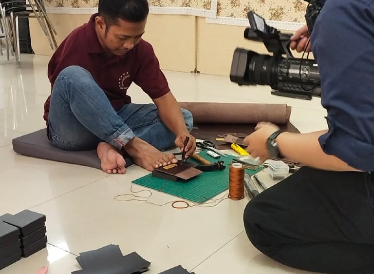 Hingga tak terasa, satu tahun sudah ia memutari Jakarta bersama sepeda motornya. Sangat berharga sepeda motor itu, ada banyak sekali keringat dan jerih payah Kiki bersamanya. Bukannya menyerah, Kiki akhirnya memutuskan untuk mengikuti kegiatan komunitas disabilitas saja. “Ya sudah coba ikut sajalah…” kata Kiki. Toh Kiki juga selalu ingin memiliki skill yang bisa ia kuasai. Dalam pelatihan itulah, Tuhan membawa Kiki bertemu Anita. Kala itu, aktivitas pelatihan sedang membuat kerajinan tangan sebuah gelang dari tali. Nantinya, hasil yang paling bagus akan dibeli oleh dua orang pembeli. Semua peserta pun langsung saja tekun membuatnya. Di tengah-tengah, terlihat Kiki, satu-satunya yang membuat gelang dengan menggunakan kedua kaki dan tangan kirinya. Kiki awalnya kikuk. Namun, hasil gelang buatan Kiki rapi sekali dan bagus. Keuletan dari hasil karya Kiki itu berhasil membuat Anita terkesan. Begitu luar biasa. Tak tanggung-tanggung, gelangnya menjadi salah satu dari dua gelang yang dibeli. Senangnya bukan main. Ternyata bakatnya ada di sini!