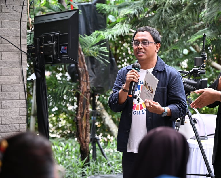 Karel Tuhehay, Penulis Buku Disablepreneur, pada peluncuran Buku Disablepreneur yang dilaksanakan tepat pada ulang tahun DCE yang ke-10, 17 Januari 2026 di Taman Doa Hati Tersuci Maria, PIK 2.