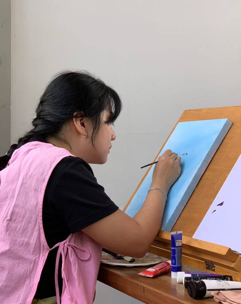 Di tahun 2021 saat pandemi, Shelly memutuskan untuk berhenti dari pekerjaannya yang lama dan mencoba menggali kemampuannya yang selama ini terpendam. Ia mulai mengikuti beberapa kelas lukis secara intensif. Tak hanya kelas lukis, Shelly juga pernah mengikuti kelas kerajinan resin.