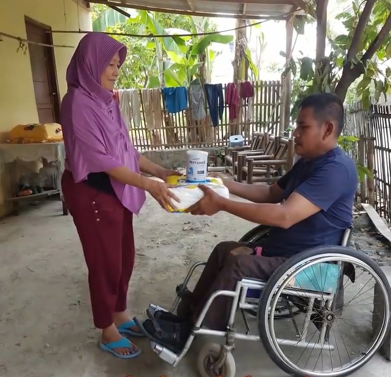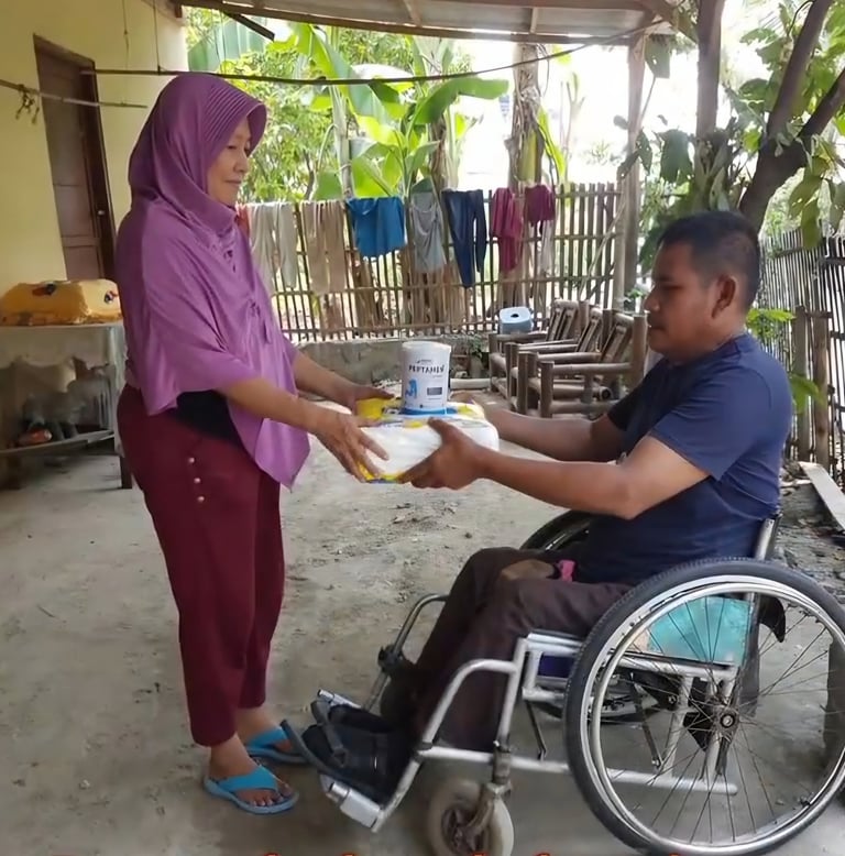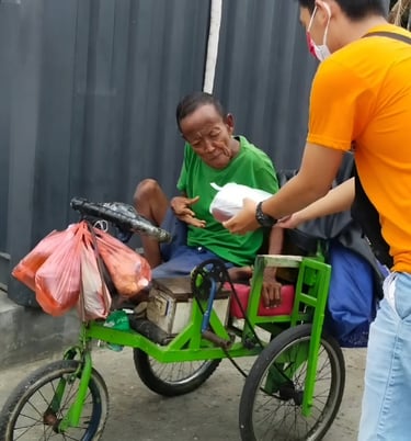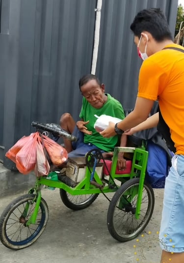 Perajin disabilitas turun ke jalan, membeli makanan dari pengusaha warung kecil dan membagikannya kepada masyarakat miskin saat masa pandemi Covid-19.