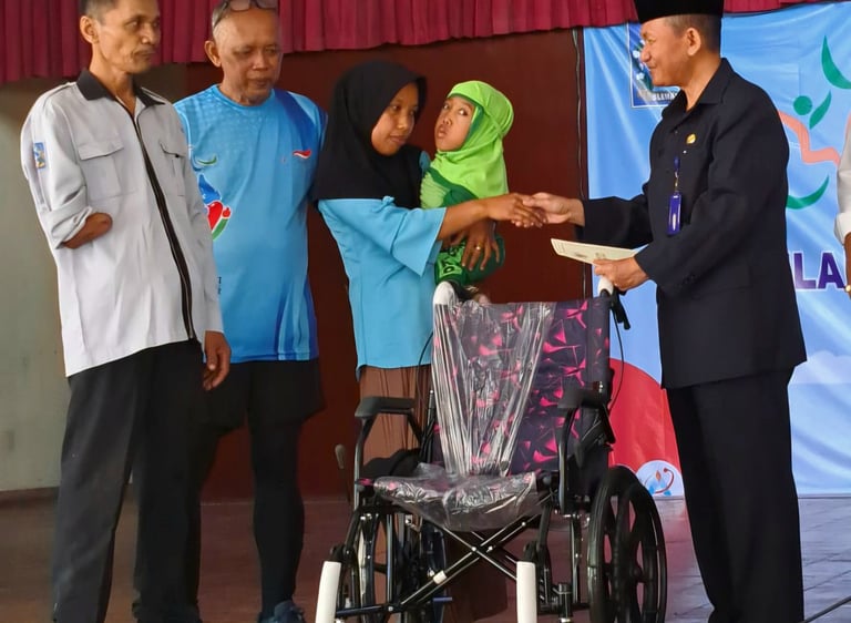 Pengadaan alat bantu bagi penyandang disabilitas, antara lain: kursi roda, alat bantu dengar.